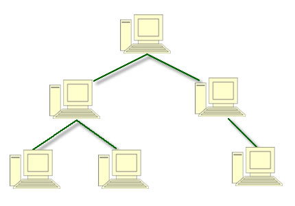 A topologia em árvore é basicamente uma série de barras interconectadas. É equivalente a várias redes estrelas interligadas entre si através de seus nós centrais. Esta topologia é muito utilizada na ligação de Hub's e repetidores.