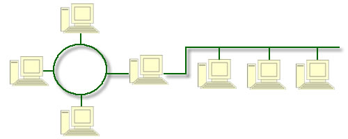 A topologia híbrida é bem complexa e muito utilizada em grandes redes. Nela podemos encontrar uma mistura de topologias, tais como as de anel, estrela, barra, entre outras, que possuem como características as ligações ponto a ponto e multiponto.